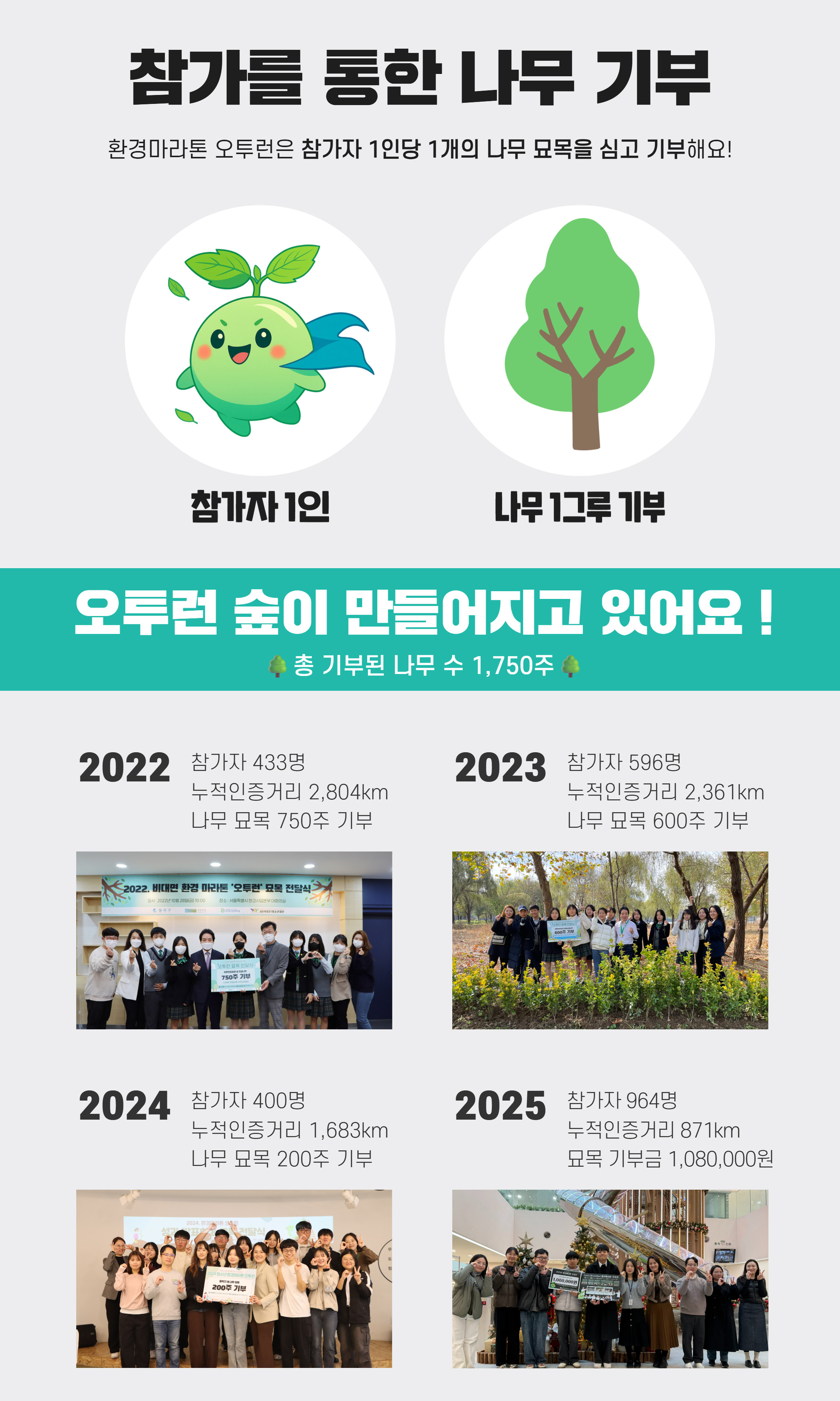 환경마라톤 오투런은 참가자 1인당 1개의 나무 묘목을 심고 기부해요!
